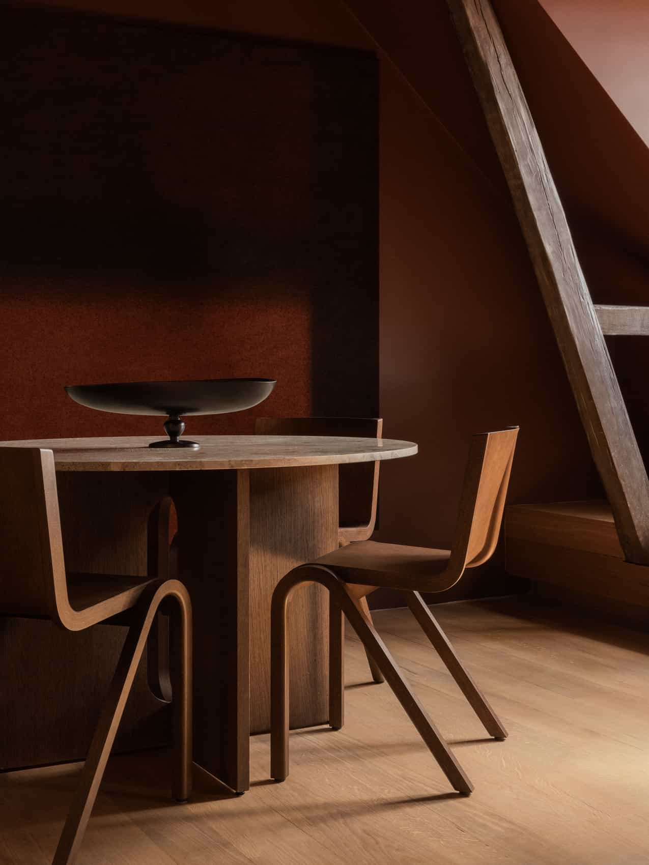 Like a magnificent monument, the Androgyne Dining Table pairs natural materials to striking effect. A bold and confident take on a dining table, it amplifies the silhouette of the collection’s side table to grander proportions, making it a characterful accent in any space—from a domestic dining room to a restaurant or other gathering point.