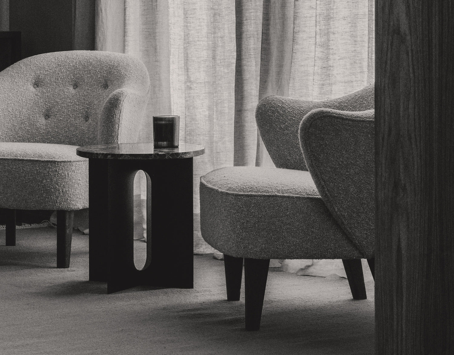 Distinguished by its playful yet elegant silhouette, Androgyne was first designed as a side table for the café in our former showroom, but quickly went into production for a larger audience. The invention of the Copenhagen-based Norwegian architect and designer Danielle Siggerud, its blend of the masculine and feminine – true androgyny – is what lends the ever-expanding collection its name.