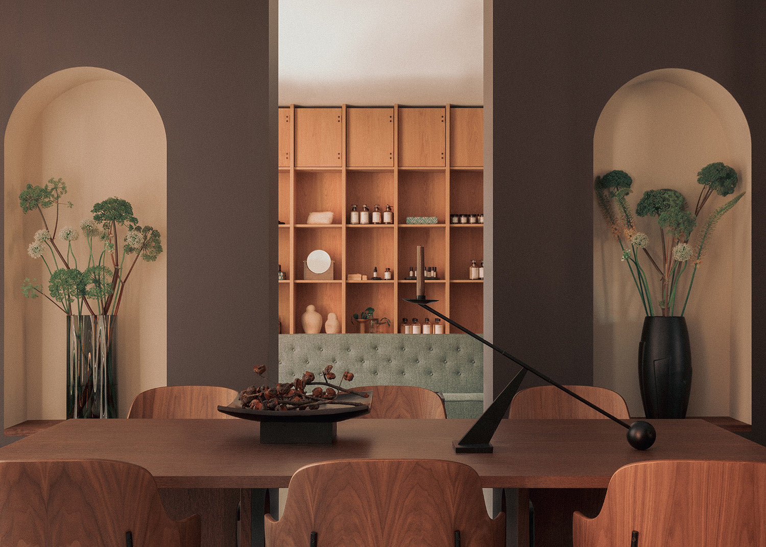 Audo Copenhagen is located at Audo House, a unique concept that masterfully unites a showroom, an exclusive boutique hotel, concept shop, as well as a café and event space in a single, community-building universe.