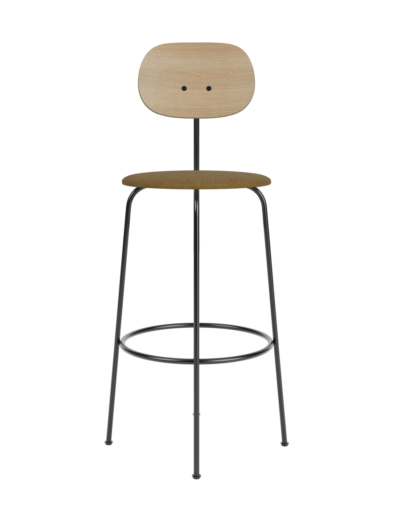 An homage to functionalism, the Afteroom Bar Chair Plus is a deconstructed design, stripped of unnecessary components to present a clean, minimalist aesthetic with high functional value. Its wide wood veneer backrest and generous upholstered seat ensure supreme sitting comfort, while the slender powder-coated metal frame is constructed for maximum stability with a foot ring that does double duty as a rest for feet. The result is a blissfully simple chair that embraces minimalism and clean lines without compromising on comfort.