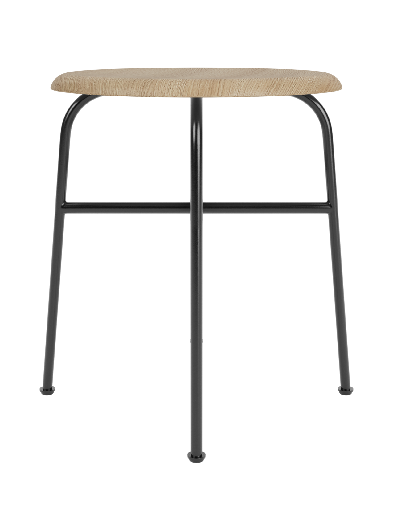 With its characteristic clean lines and sturdy base in tubular black powder-coated steel, tethered with cross bars for support, the Afteroom Stool comes in three heights, making it easy to slide up to a bar, counter or table. Boasting a high standard of craftsmanship and durability for long-lasting use, in wood veneer the stool brings warmth and tactility to interiors while its sleek, minimalist profile ensures it fits seamlessly into any setting.