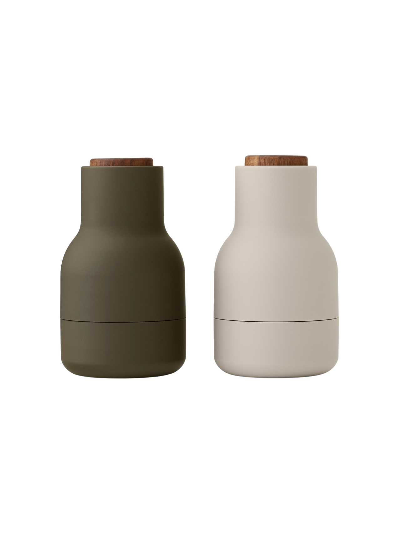 Bottle Grinders, Small is a two-piece set of salt and pepper mills, each fitted with a powerful ceramic mill that makes light work of grinding a wide range of spices. Shaped as bottles that sit comfortably in the hand, the set is smaller than the original Bottle Grinder design, making it ideal for use where space is at a premium.