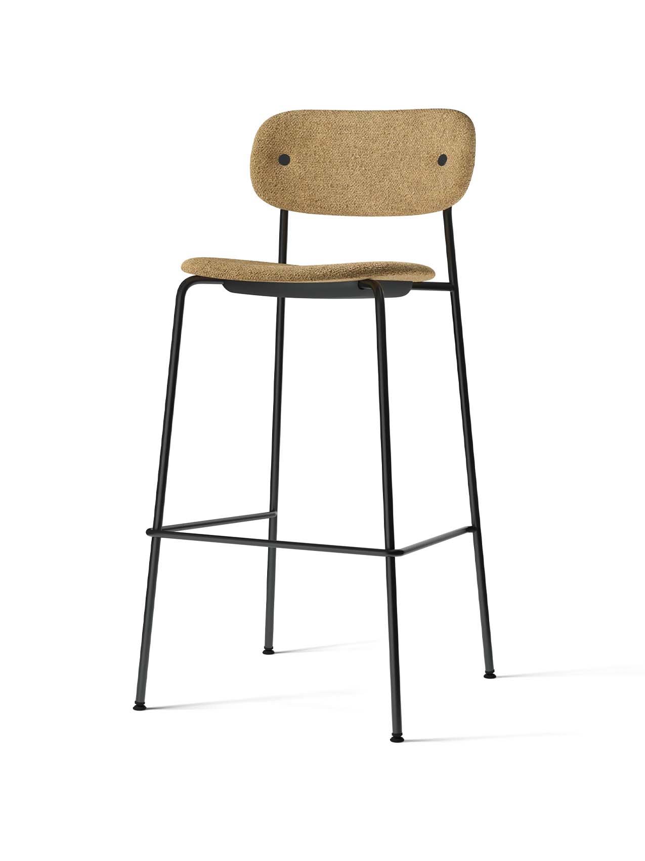 The Co Chair Collection is defined by its contoured form and warm materials. Conceived in collaboration with Norm Architects and Els Van Hoorebeeck, the Co Bar Chair is shaped with a wide back and generous seat and is set on a slender yet sturdy tubular steel frame. Equal parts comfortable and elegant, the versatile design is available in two versions, counter and bar, allowing you to select the height that best suits your needs. Wood veneer and upholstery finishes allow you to further customise the design. Both versions feature a footrest for added support and stability as you sit. The Co Bar Chair is stackable, with the capacity to stack up to 4 chairs for easy storage and practicality.