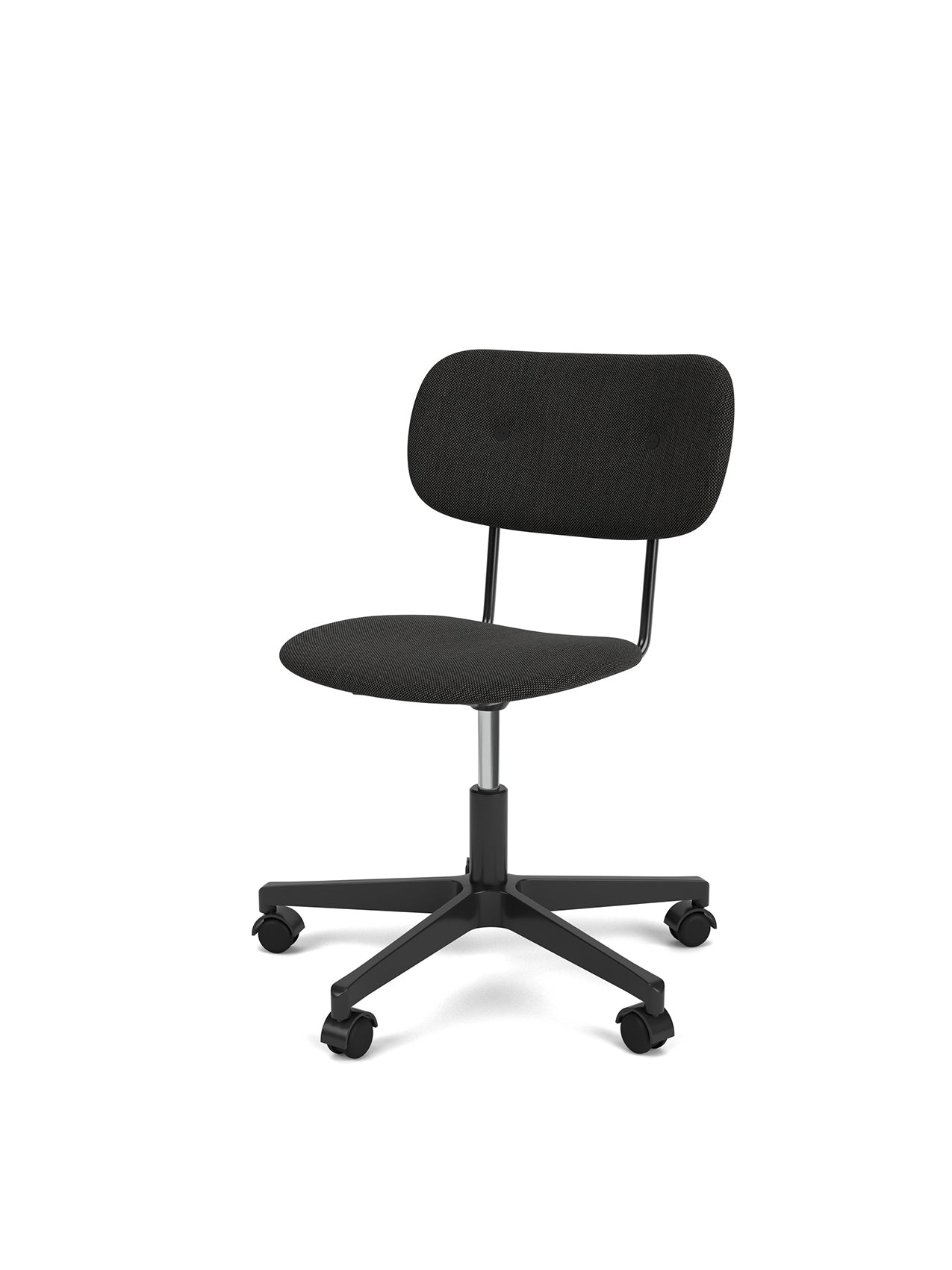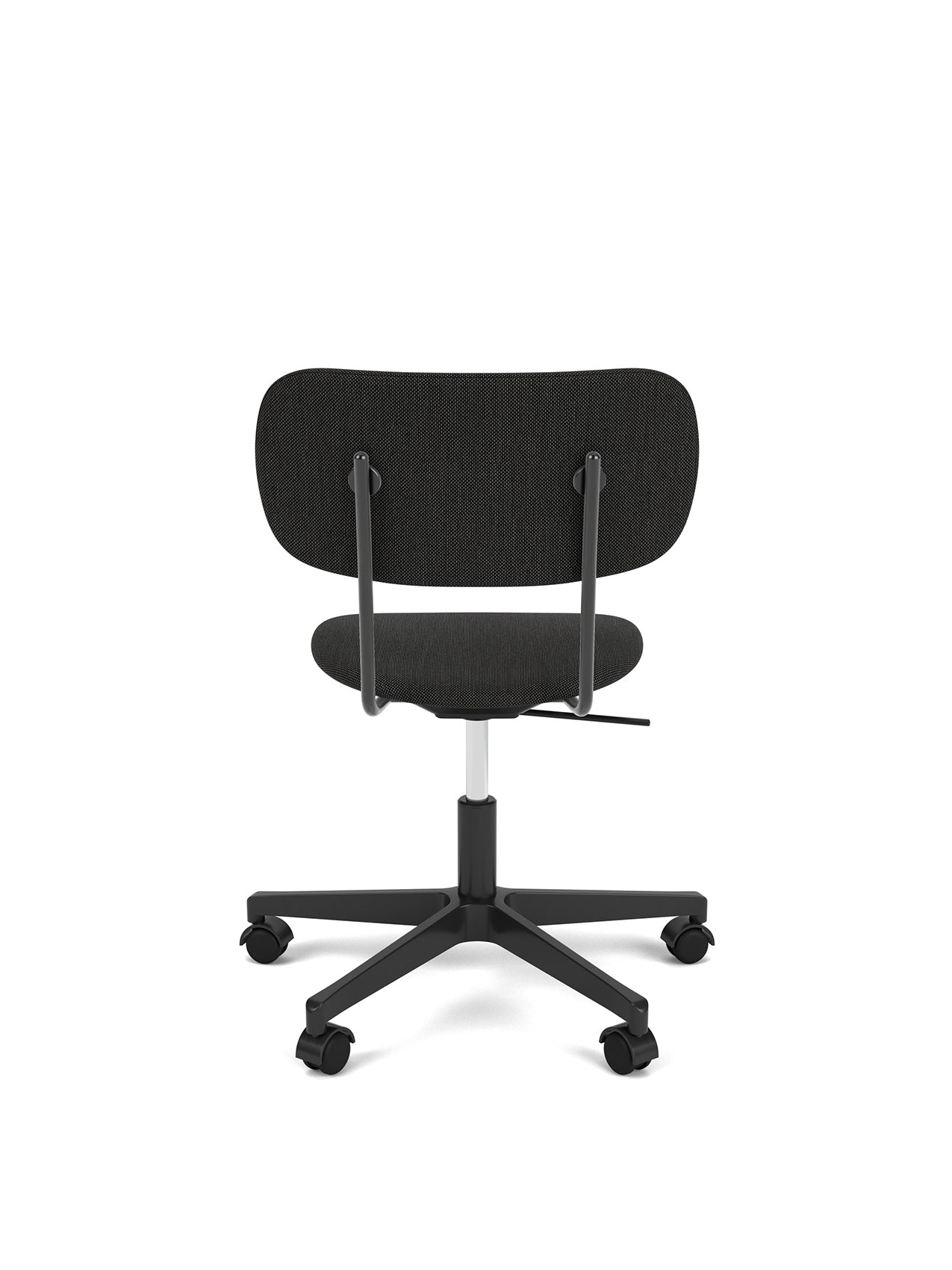 The Co Task Armchair seamlessly integrates sitting comfort and flexible function into its minimalist expression. Designed for a wide range of work settings and set on a five-star Black swivel base with casters, a height-adjustable feature ensures adaptability to workspaces and user preferences, promoting ergonomic comfort for users of different heights. Together with supportive armrests and an upholstered seat and back, a flex tilt function enhances comfort, allowing for adjustment to the preferred seating position for optimal support during extended periods of use.