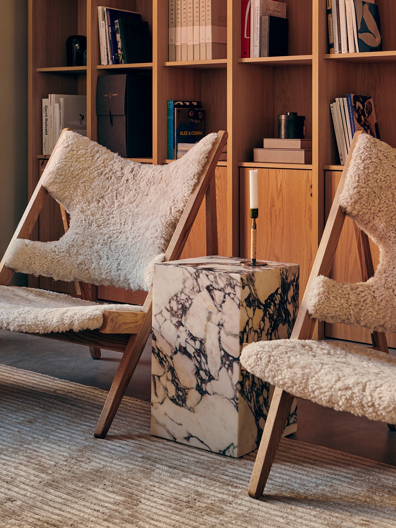 The Copenhagen-based design studio Krøyer-Sætter-Lassen creates furniture and interior objects for clients across the world. Founded in 2016 by Mads Sætter-Lassen and Emil Krøyer, their honest approach to design results in logical, functional and sculptural objects that showcase their strong cultural understanding and Danish design heritage to bridge the gap between art and design. Krøyer-Sætter Lassen began their collaboration at the Royal Danish Academy of Fine Arts, School of Design, where they have graduated with their BA and subsequently, an MA. Their collaboration has grown from a give-and-take about art and design into the creation of existing projects. The duo recognizes their differences and strengths allowing them to approach their process from different character angles. Krøyer-Sætter Lassen engages each other to seek new materials and perspectives in order to work in a nicety way. Krøyer and Sætter-Lassen's honest focus is revealed through their consideration of material properties and tectonic details. They prefer to make the conscious choice of turning a joint or assembly into a visible design asset instead of concealing it -keeping true to the industrial way.