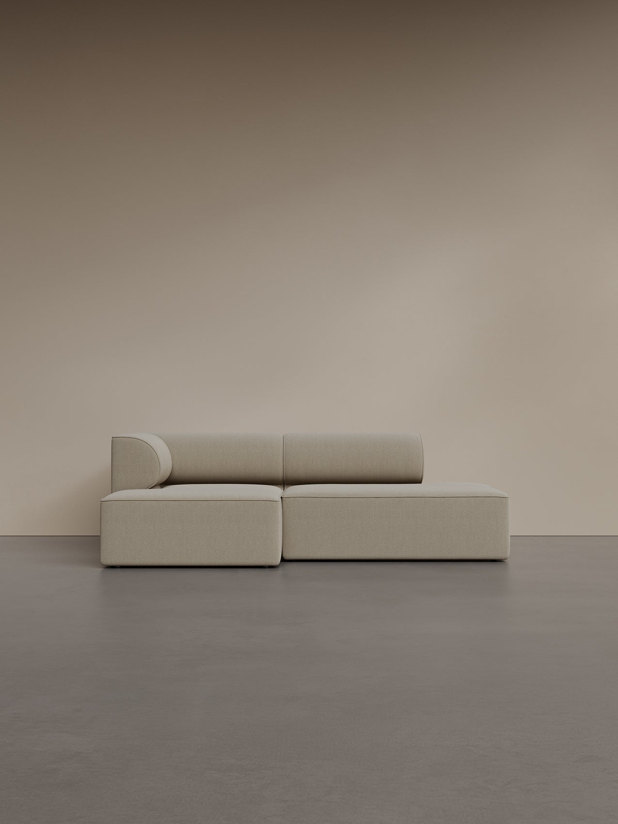 Made with lounging in mind, the generous yet perfectly balanced proportions of this module sofa feature one open end module and one chaise longue module, each with extra deep seats and softly curved backrests.