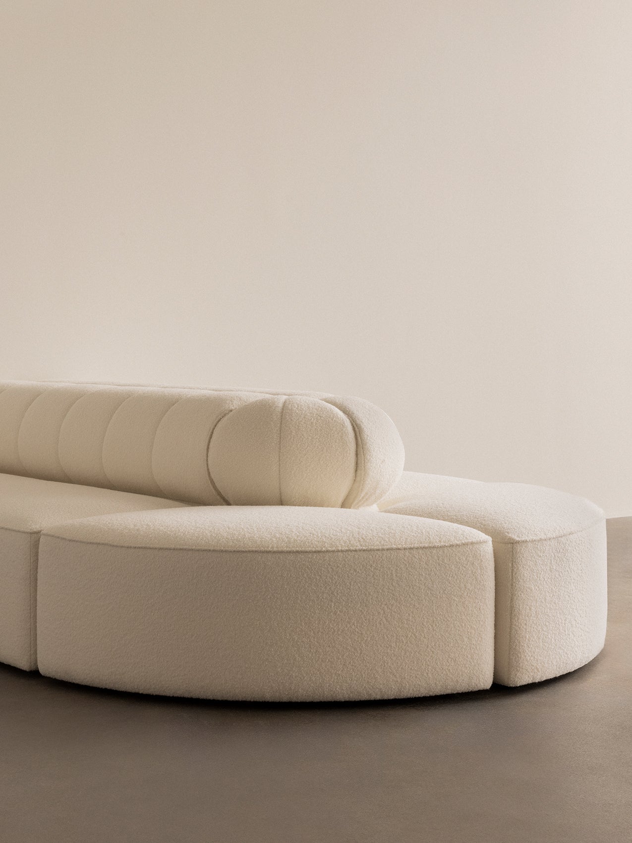 Slotting effortlessly between other sections of the Eave Seamline sofa series to create a softly curved design, this corner piece has a rounded back that offers support when sitting or reclining. Inspired by architecture, its clean, neutral look is injected with subtle touches of personality in the form of stitch details.