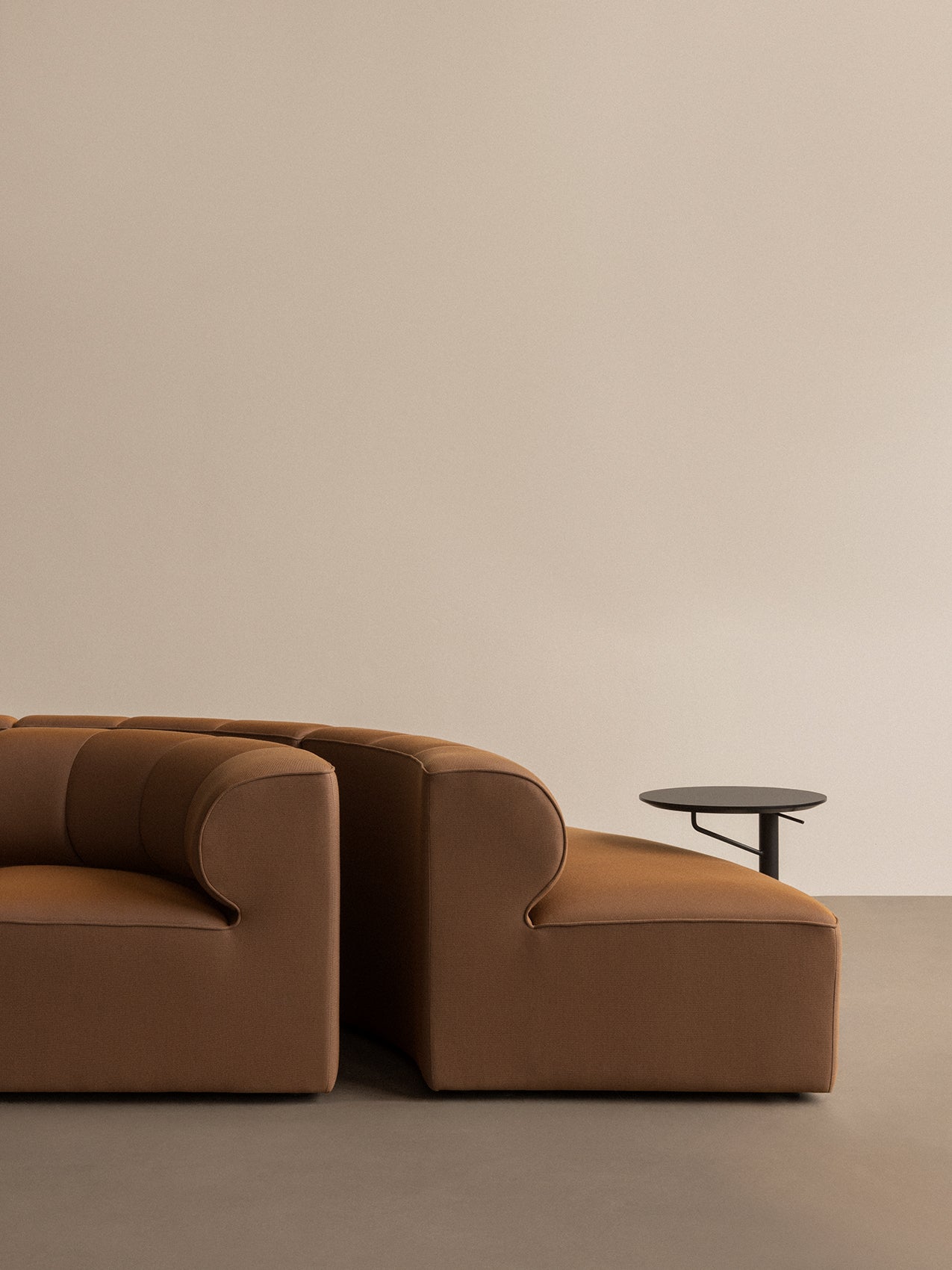Providing support at the back thanks to its comfortable convex design, this open module is a building block for the Eave Seamline series of customisable, sectional sofas to suit any space and preferences. Its clean, neutral look is injected with subtle touches of personality in the form of stitch details.