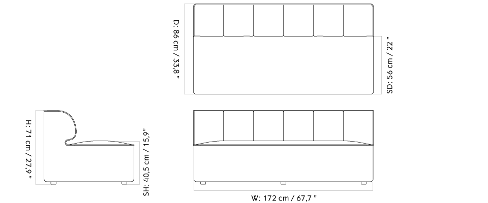With its deep seat and generous proportions, this open section of the Eave Seamline series invites you to stretch out and unwind. The rounded, padded backrest provides the perfect balance of support and softness. Its clean, neutral look is injected with subtle touches of personality in the form of stitch details and concave and convex forms that provide comfort and support when sitting our lounging.