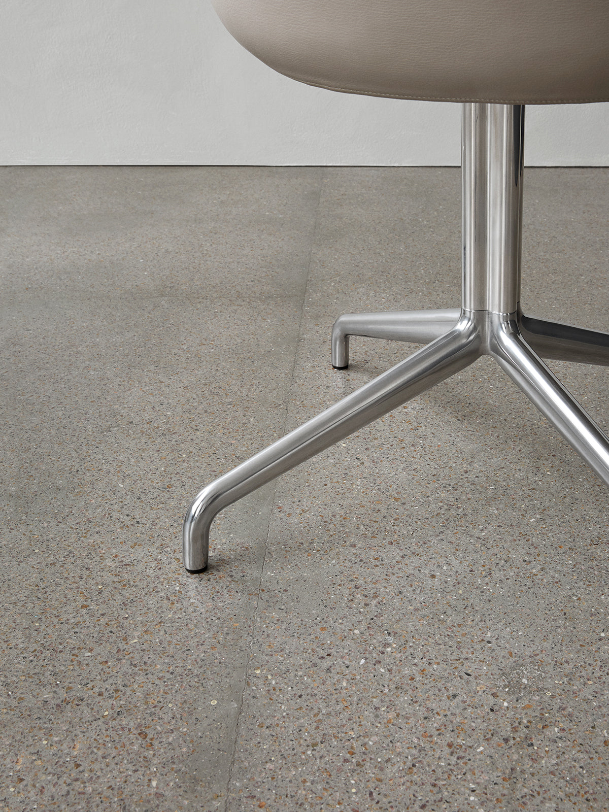 Once you’ve chosen the Harbour Chair shell style that will be cradling and supporting your body, you can now also choose a clover-shaped swivel base so you can spin around as needed – and roll around as wanted, should you opt for caster wheels. The base is available with either swivel or swivel with return options in two finishes – polished aluminum or powder-coated aluminum in black.