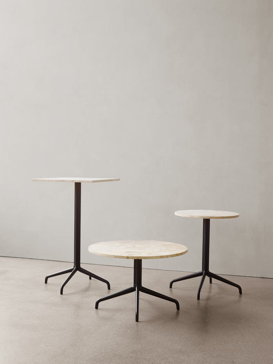 With its low profile and sculptural silhouette, the Harbour Column Lounge Table is perfectly proportioned for use in lounge areas, reception spaces or casual work nooks. The table’s versatility is matched by its material palette: five tabletop finishes, including charcoal linoleum, black oak veneer and stone. The slim, black powder-coated column base with a star-shaped foot ensures stability with a refined touch.