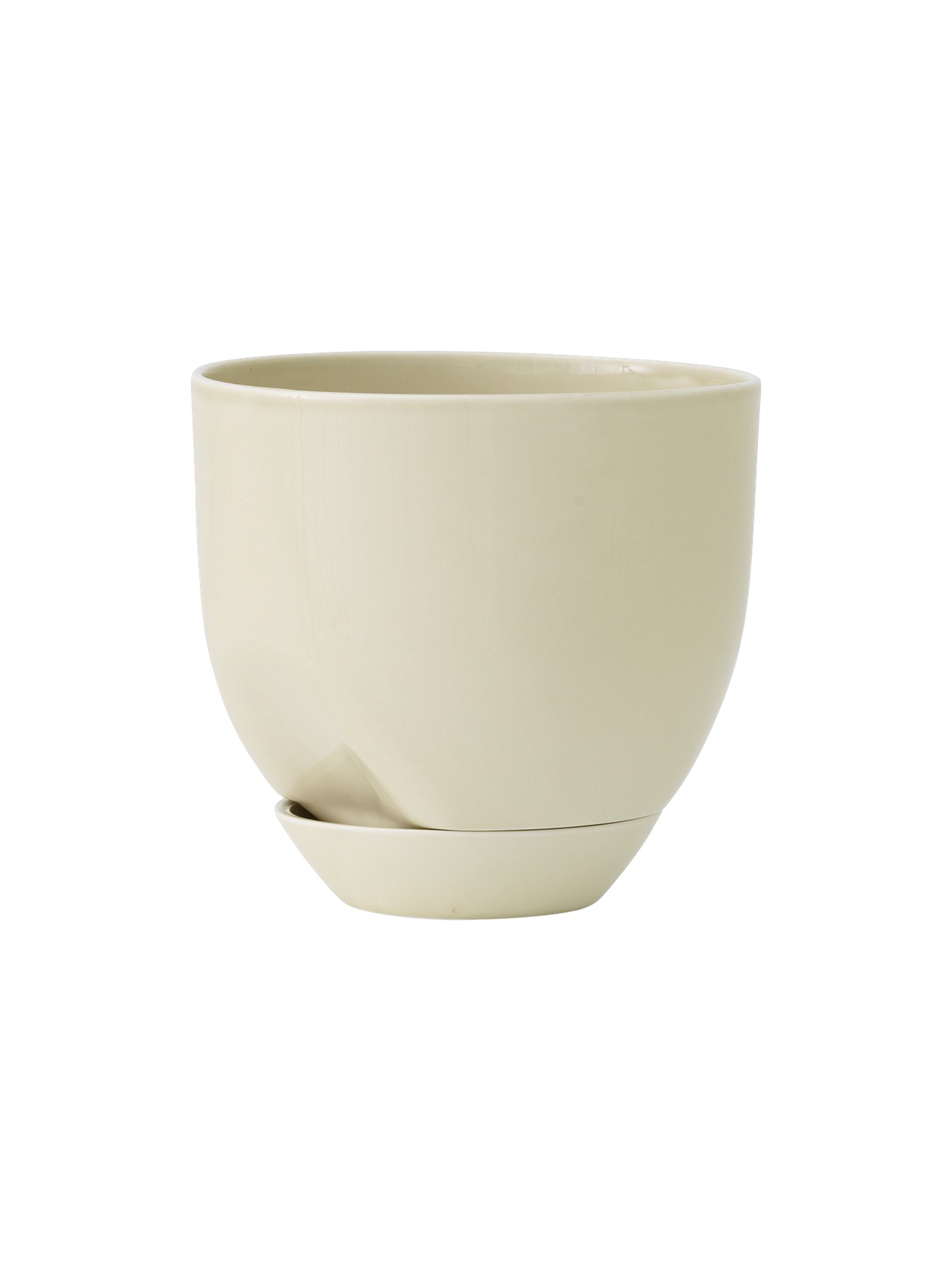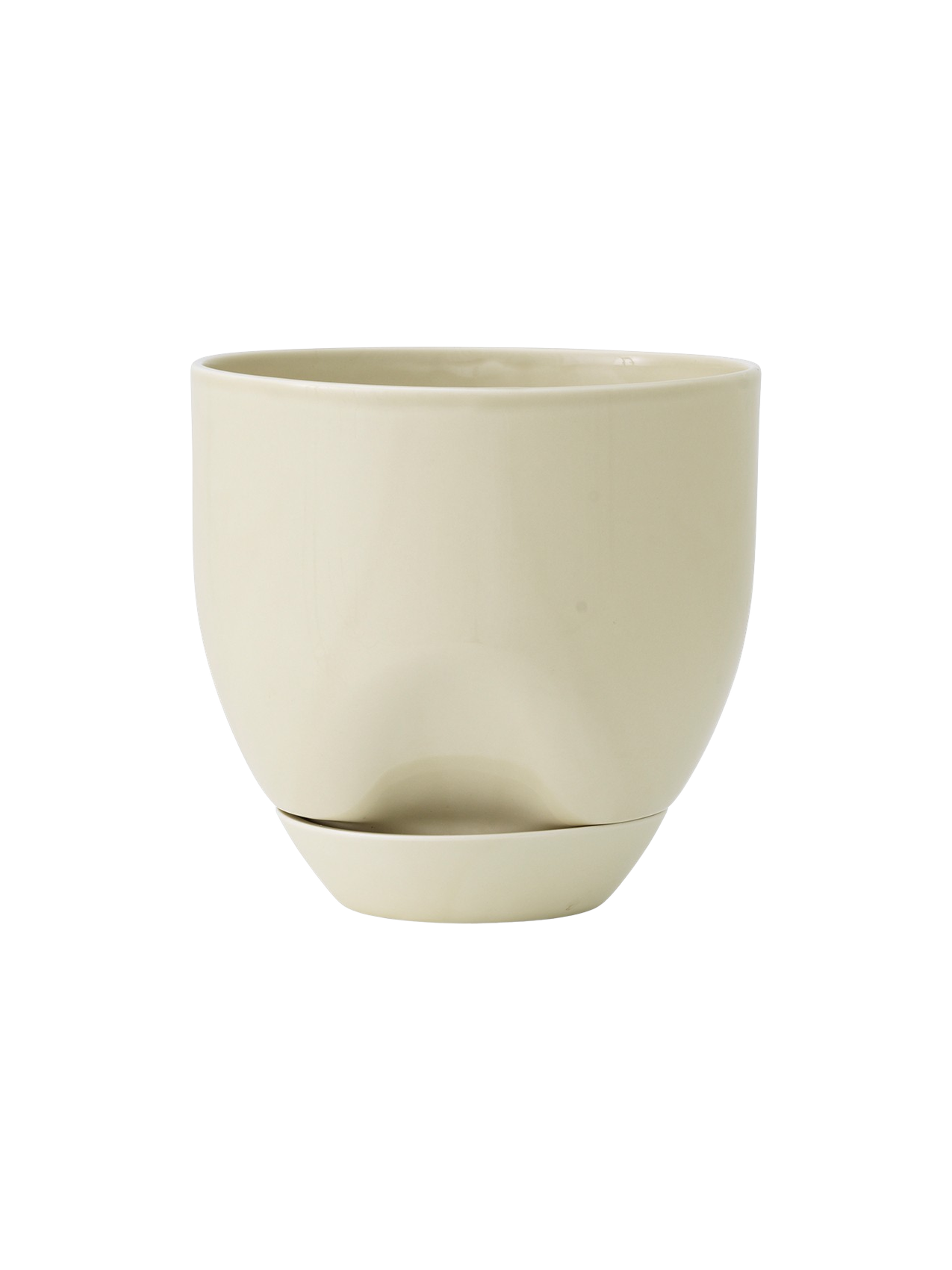 Our clever, self-watering pot ensures easy plant care whether you are home or away. Shaped from stoneware glazed for a glossy finish, the practical design enables the plant to draw water to its roots as needed: a nylon wick transports the water from the saucer to the soil, ensuring correct hydration all year round. Available in two sizes in two colours. For indoor use only. Explore the full Hydrous Collection.