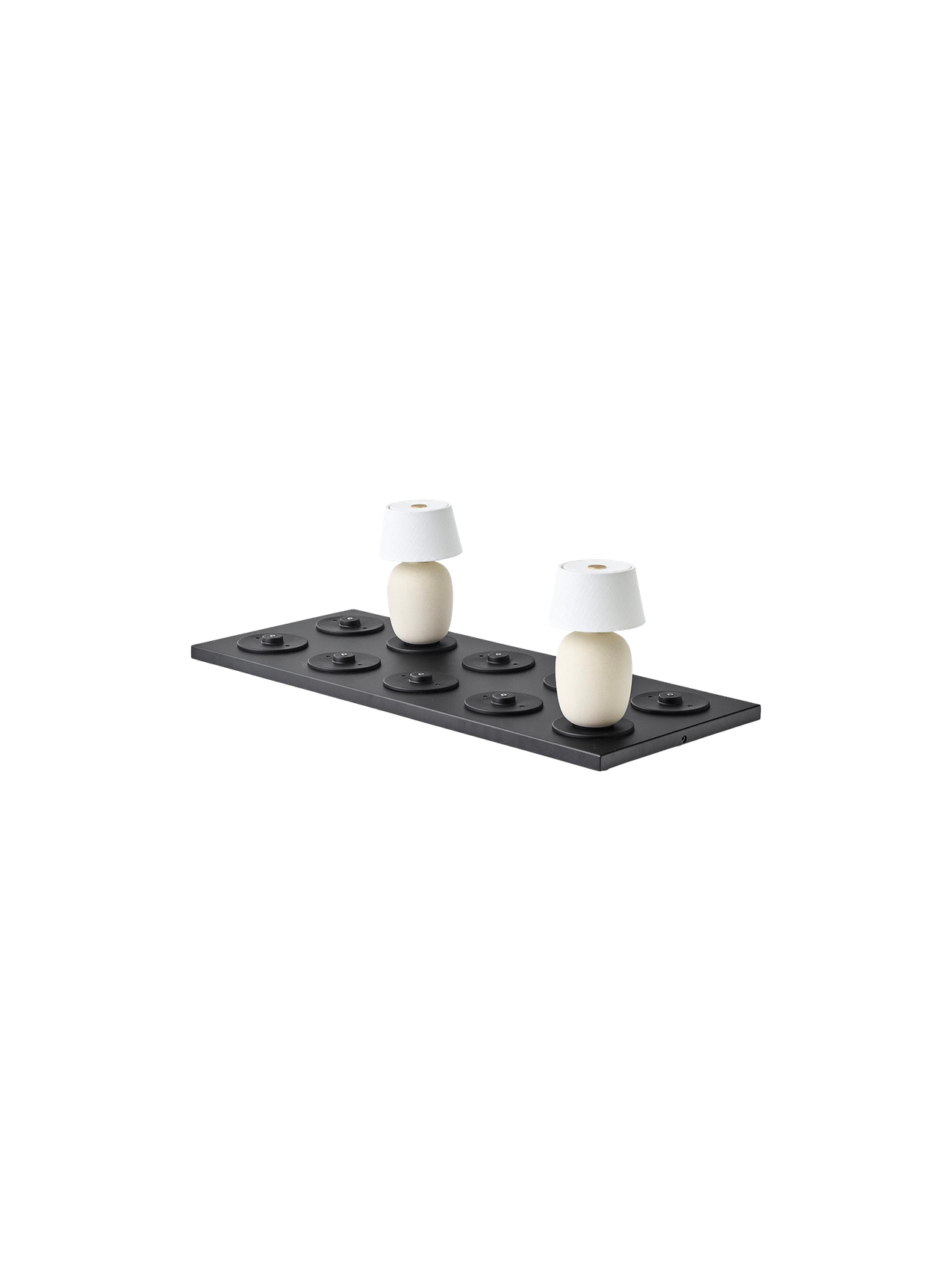 Our classic JWDA Lamp in a cordless version. Inspired by traditional oil lamps and crafted in contrasting materials, the JWDA Portable has the freedom and flexibility to move anywhere you want. Delivering 10 hours of adjustable light when fully charged, the small-scale design is defined by its elliptical glass shade and solid metal base with a brass dimmer switch. The cordless design charges via a concealed magnetic connector and USB cable. The cable charges with a standard USB charger plug. Comes without charger plug. The lamp is compatible with Audo's Charging Board.