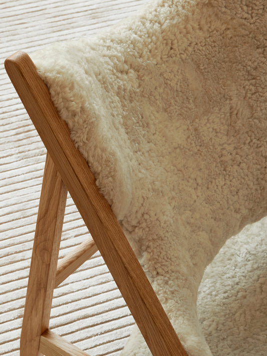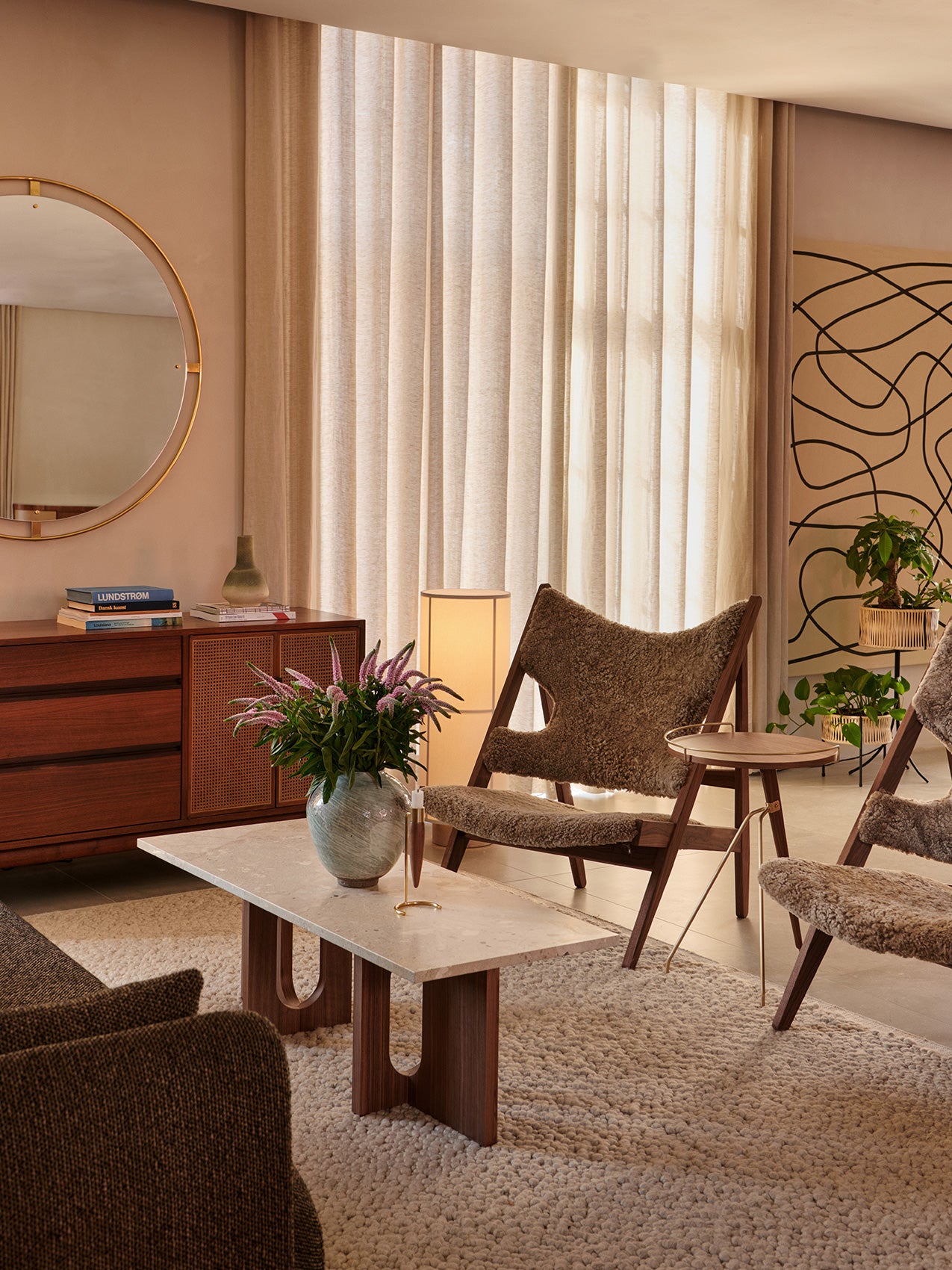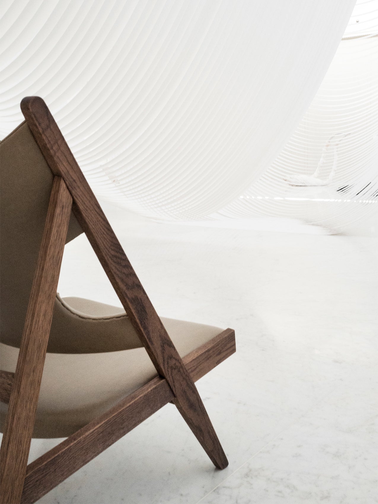 The Knitting Chair by Ib Kofod-Larsen, first launched as a limited edition in 1951, makes a triumphant return to the world of modern Danish design under Audo’s concept of “Modernism Reimagined”. This is the brand’s first foray into classic furniture. The chair’s sense of proportion and unparalleled quality makes it a natural choice to bring into contemporary interiors. The playful nature of the Knitting Chair serves to highlight its thoughtful design. Named for the elbow cut-outs that allow maximum comfort while knitting (or reading), the chair is clearly the work of a master designer.