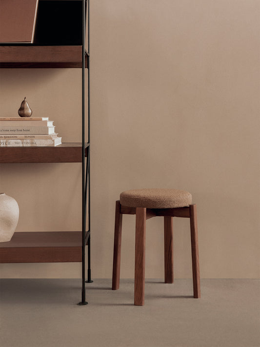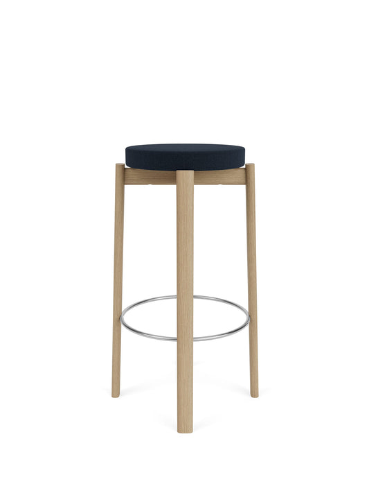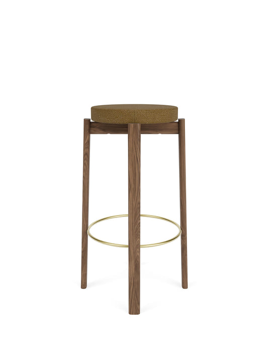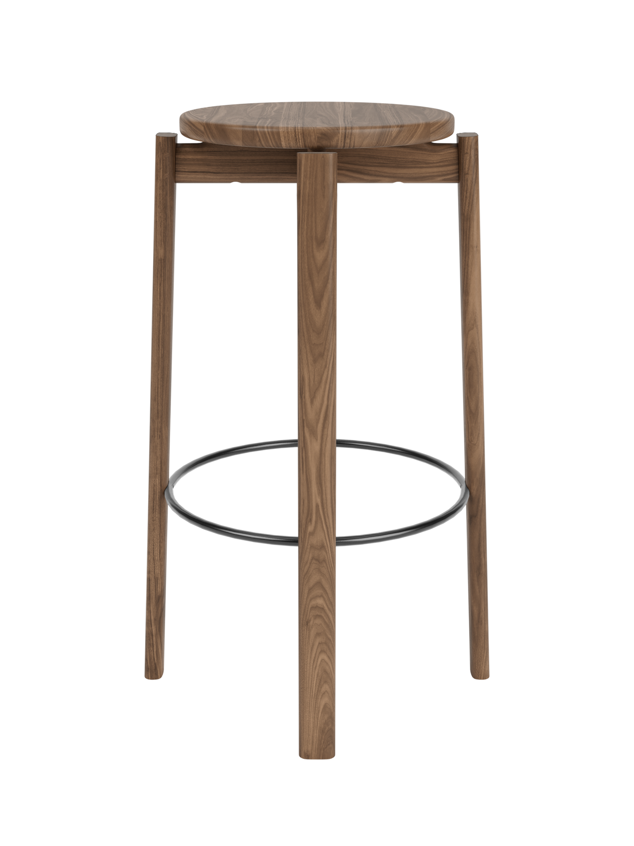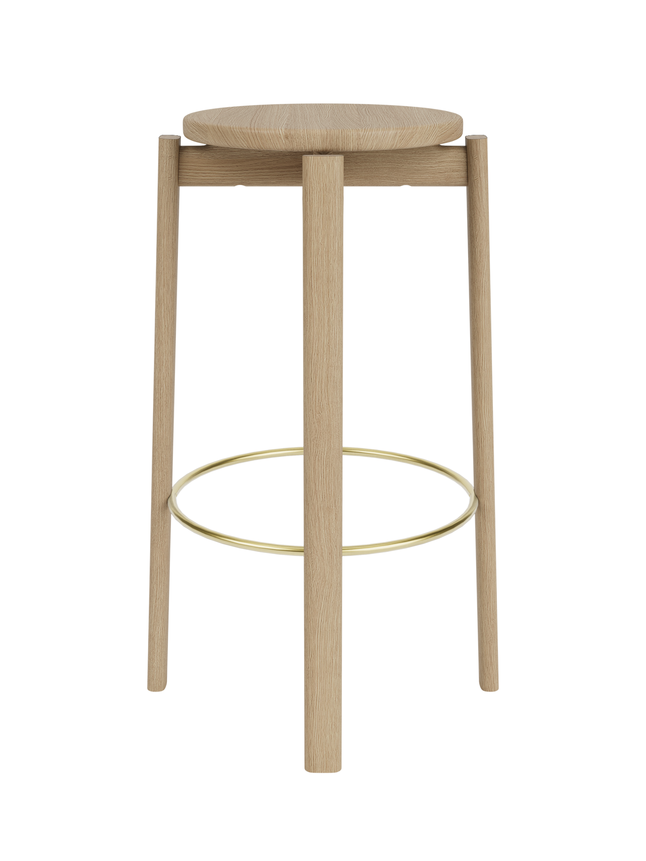 Looking to time-honoured Danish cabinetmaking traditions, the Passage Bar Stool in walnut or natural oak showcases modern design and woodworking through traditional techniques. Crafted from solid walnut or FSC™-certified solid oak with a lacquered finish, the rich colour and luxurious grain pattern inherent to the high-quality hardwood ensure an enduring aesthetic. Thoughtfully designed, a black or brushed brass foot ring ensures a comfortable seating experience for extended periods, while the stool's bar height aligns seamlessly with kitchens and other communal spaces, making it a versatile design that effortlessly blends functionality with comfort. Its ingenious flat-pack construction encourages active participation in the assembly process.
