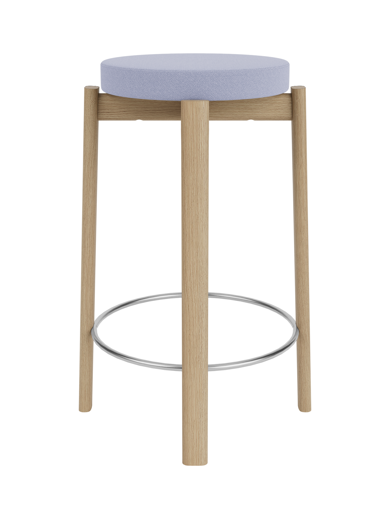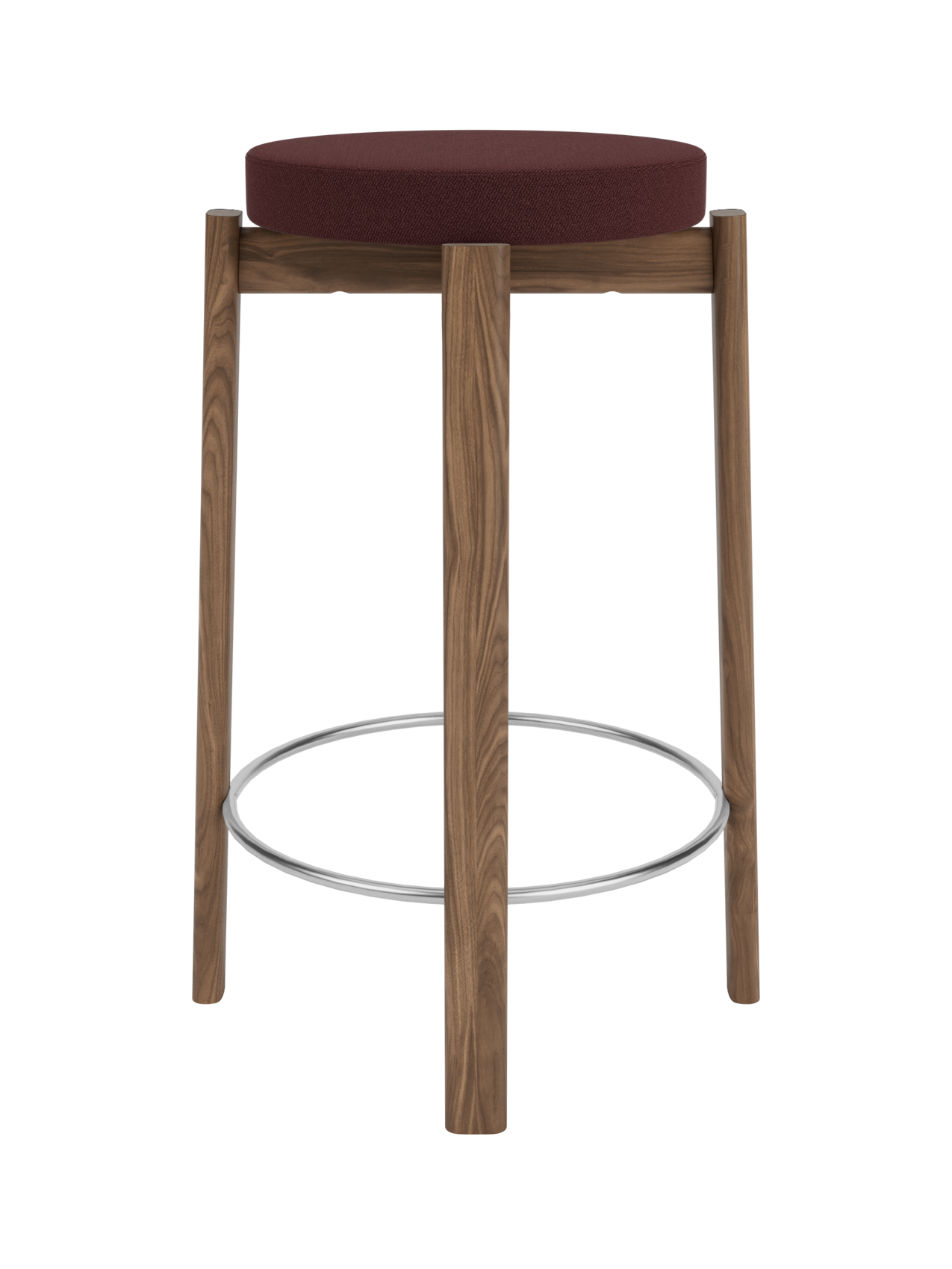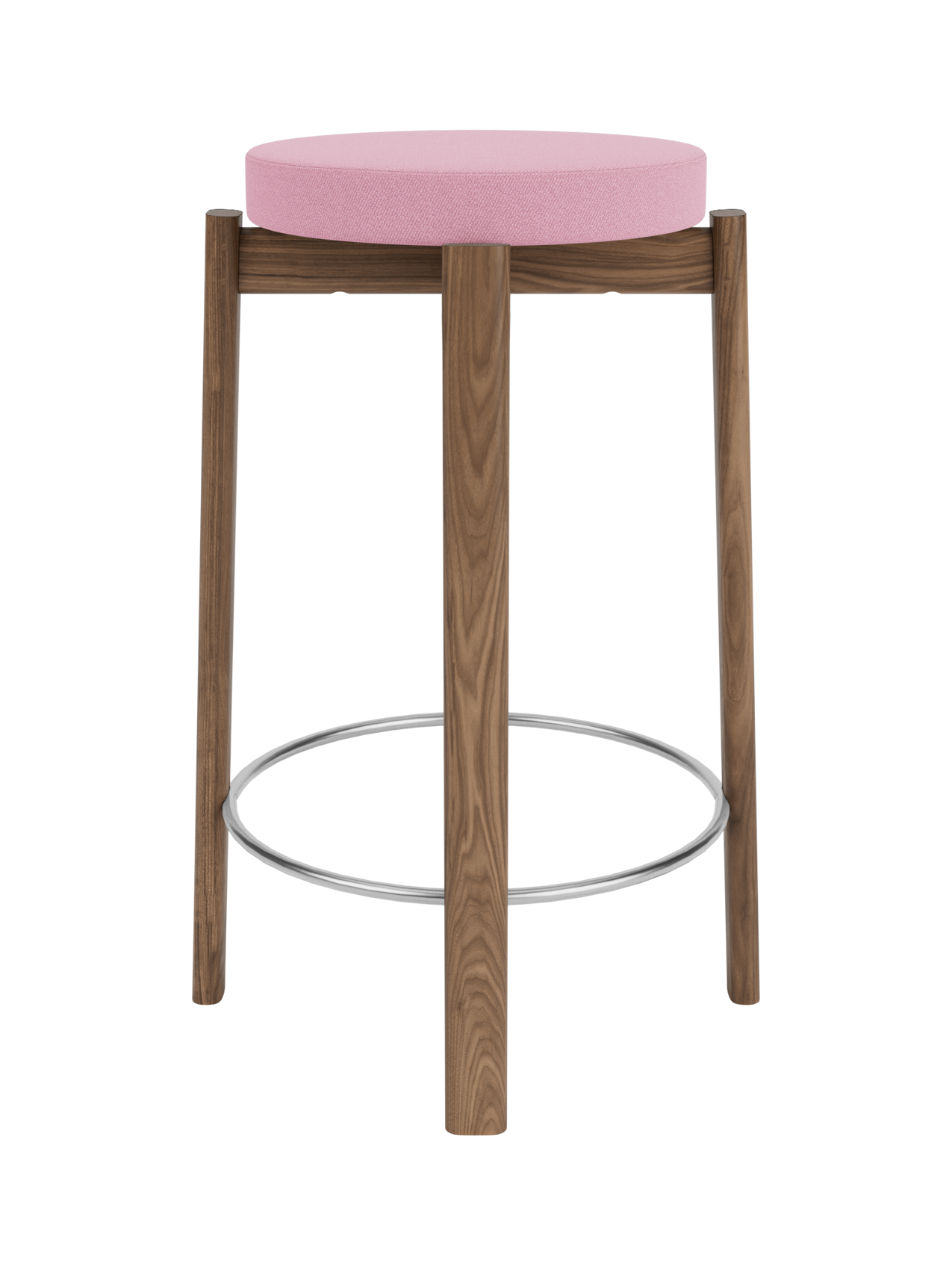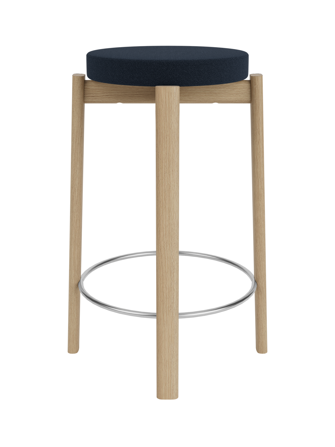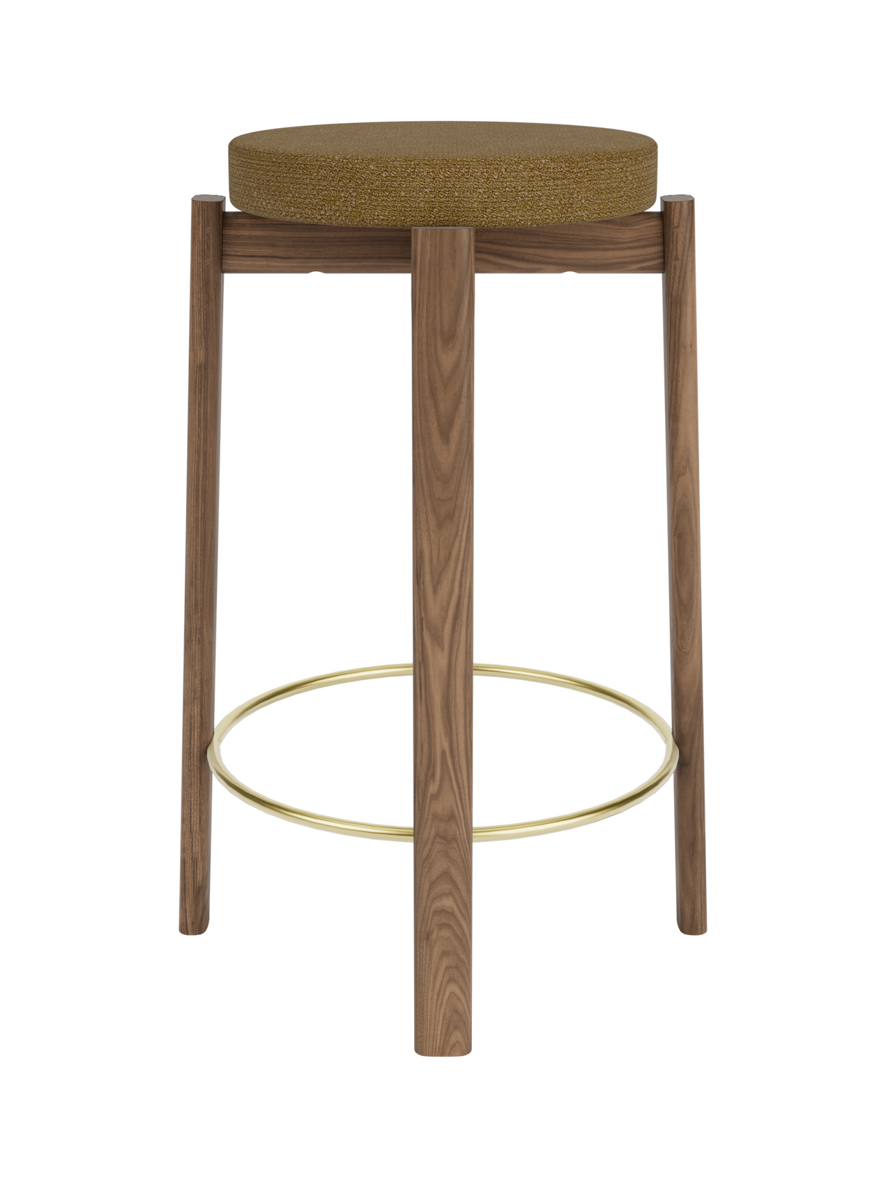 The upholstered Passage Counter Stool represents an elevated iteration of the original design and a heightened level of comfort. With its upholstered seat, providing a plush and inviting sitting experience, the versatile design is anchored by a solid wood base, in lacquered walnut or FSC™-certified natural oak, not only adding a touch of natural warmth to the design but also ensuring stability and durability for long-lasting use. Customisable fabric upholstery options provide a personal touch while a brushed steel or brushed brass foot ring enhances the comfort level. The Passage Collection demonstrates meticulous attention to detail, highlighting a commitment to both comfort and aesthetics rooted in traditional woodworking techniques.