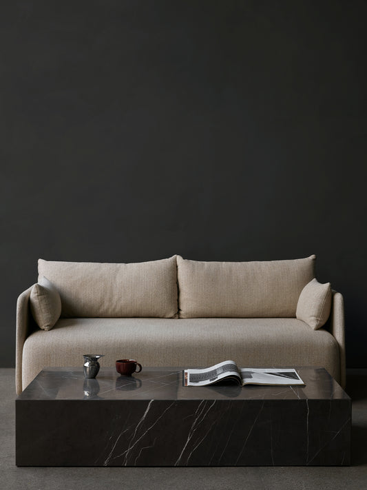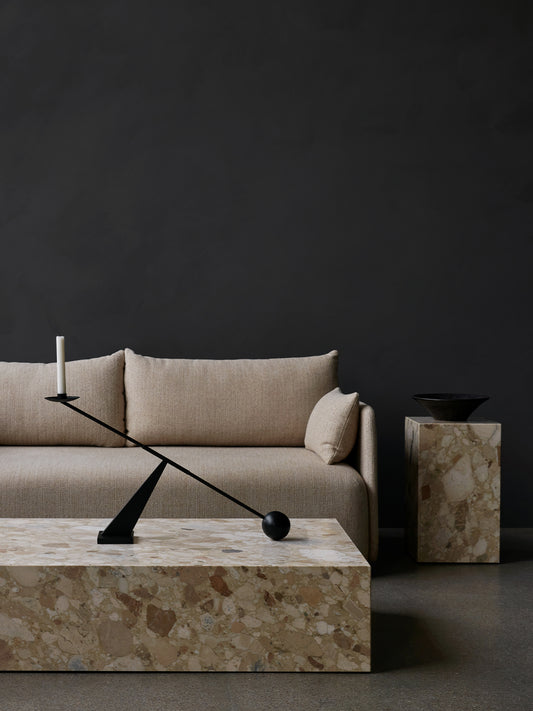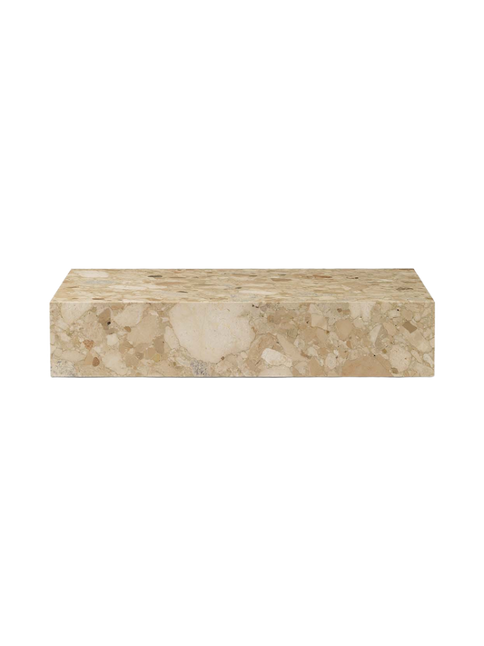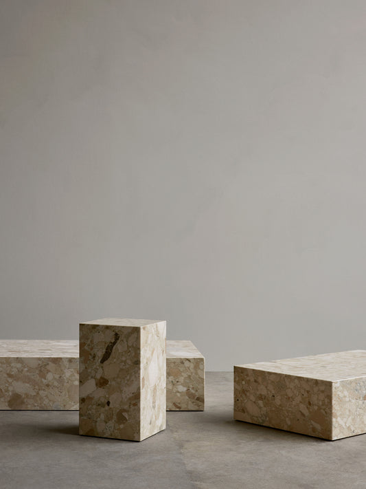 Plinth Bridge has a classic silhouette and modern material appeal. Designed for use independently as well as in combination with the Plinth Grand and Plinth Low podiums – forming a bridge across the low-slung designs for elevated surface space – the sleek design is offered in a range of beautiful, natural materials: from classic White Carrera marble and the intriguing purple-veined Calacatta Viola to sand-coloured Kunis Breccia stone.
