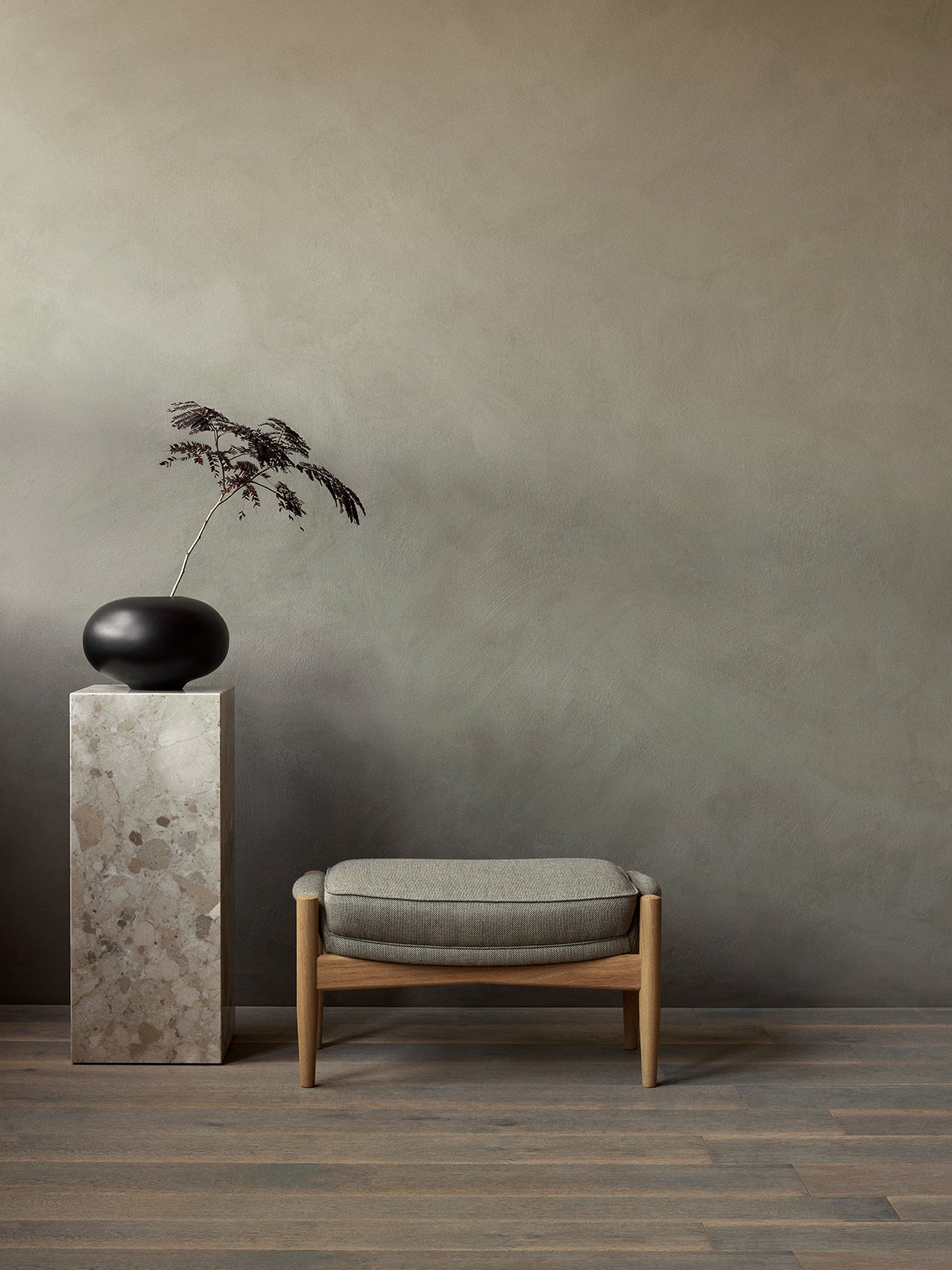 Re-wool is a luxurious upholstery fabric that champions sustainability. Made with recycled wool, it features a woven stitch-like surface with a remarkable colour depth that creates a dynamic visual interplay on furniture surfaces.