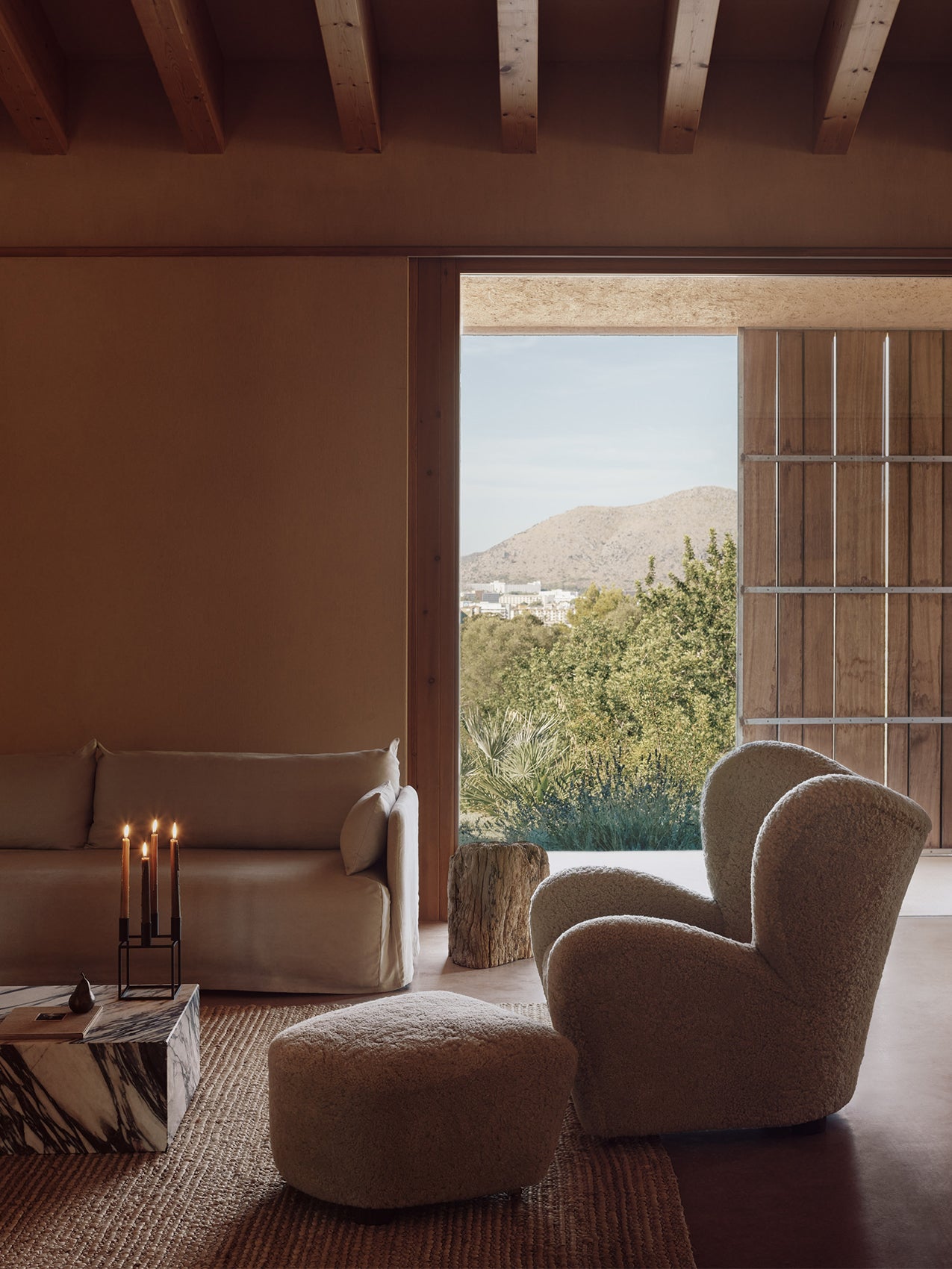 The Tired Man also known as "Den trætte mand" was launched at the Copenhagen Cabinetmakers’ Guild Exhibition in 1936 and has since become an icon of Danish design. The epitome of craftsmanship and comfort, the characteristically curved armchair was designed by Flemming Lassen to feel “as warm and snug as a polar bear cub in the arms of its mother.” Relaunched in 2015, the award-winning design is offered in plush upholstery, including sheepskin in a nod to the original, and with natural or dark-oiled oak heartwood legs and front brass casters for easy movement. A corresponding footstool ensures further comfort. The Tired Man Lounge Chair is upholstered in Oeko-Tex® certified sheepskin from Skandilock*.