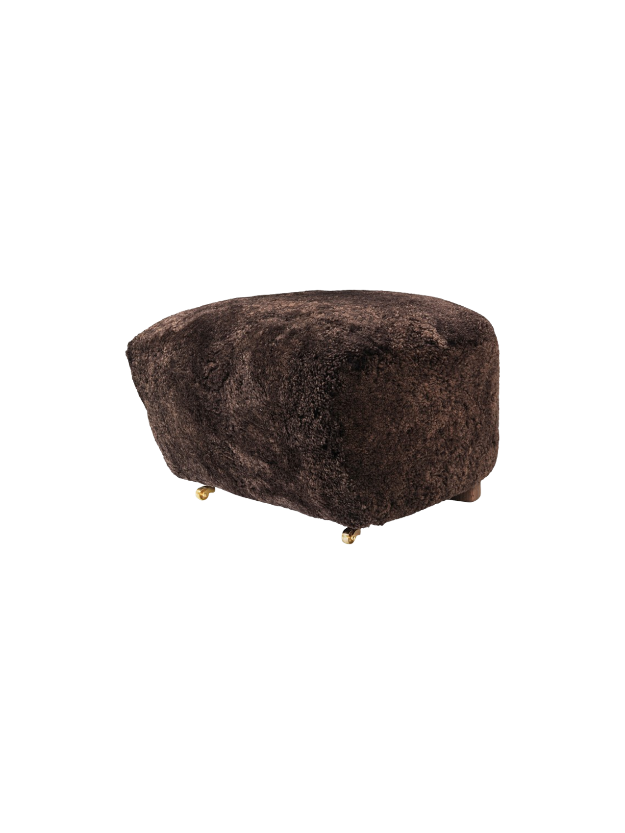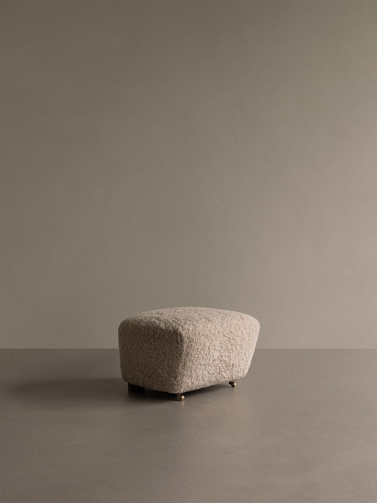The Tired Man also known as "Den trætte mand" was launched at the Copenhagen Cabinetmakers’ Guild Exhibition in 1936 and has since become an icon of Danish design. The epitome of craftsmanship and comfort, the characteristically curved armchair was designed by Flemming Lassen to feel “as warm and snug as a polar bear cub in the arms of its mother.” Relaunched in 2015, the award-winning design is offered in plush upholstery, including sheepskin in a nod to the original, and with natural or dark-oiled oak heartwood legs and front brass castors for easy movement. A corresponding footstool ensures further comfort. The Tired Man Ottoman is upholstered in Oeko-Tex® certified sheepskin from Skandilock*.