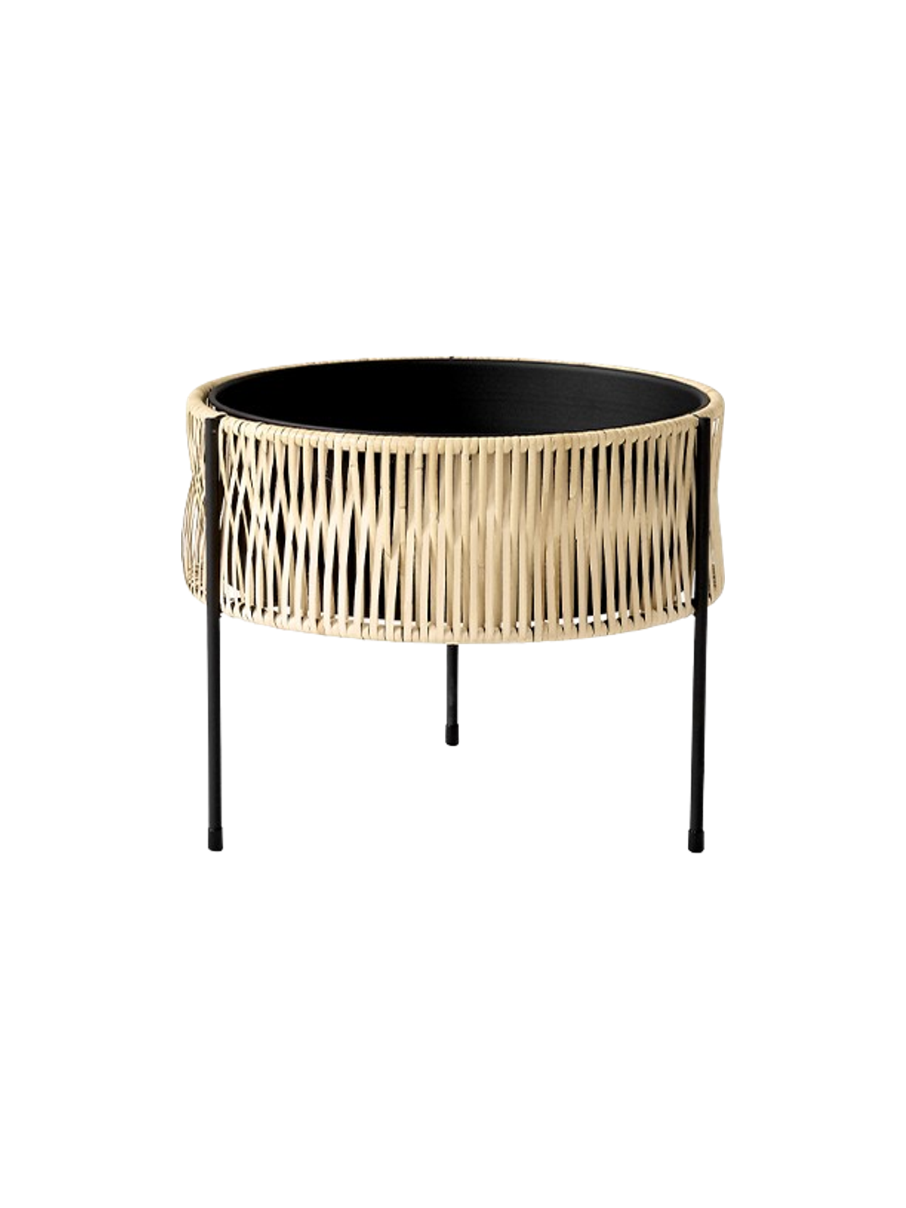Offered in three different sizes, the Umanoff Planter marries sleek powder coated steel lines with curved handwoven rattan for a natural contrast. Designed in 1961 by the late Arthur Umanoff, a master of mid-century modern, the elevated planter is suitable for both indoor and outdoor use.